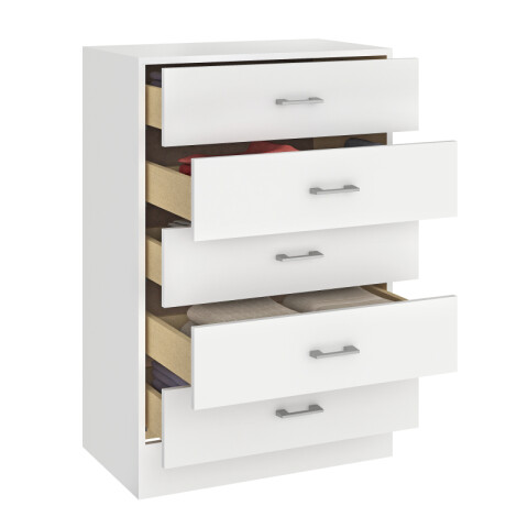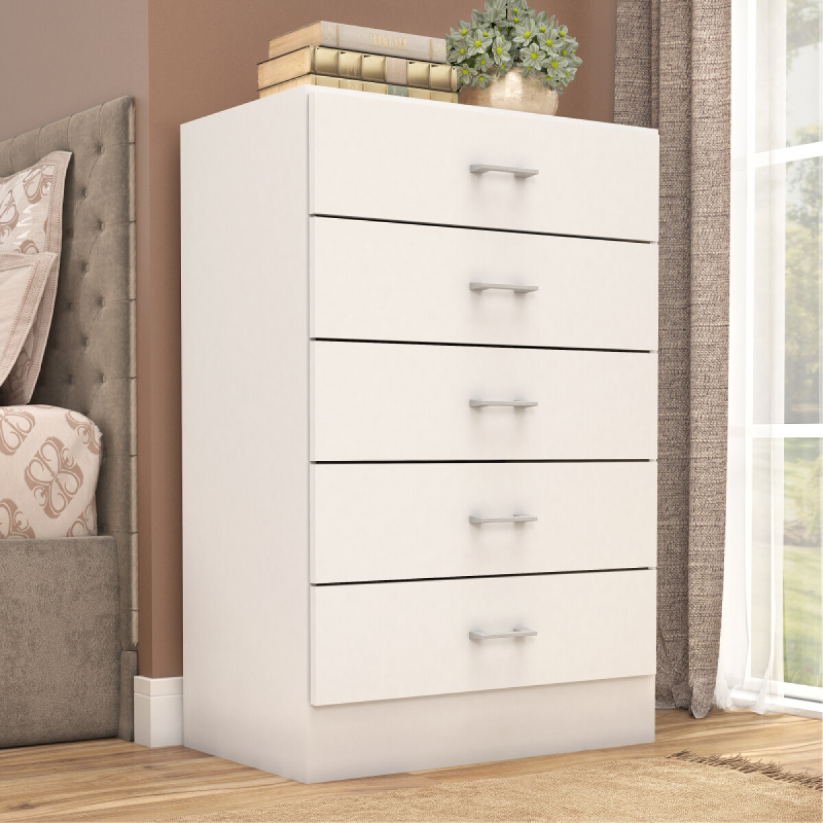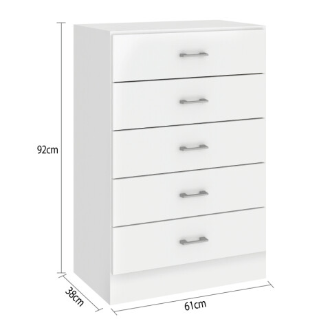 Entrega Express Montevideo Comoda Cajonera para Dormitorio o Living de 5 Cajones - FE - Blanco
